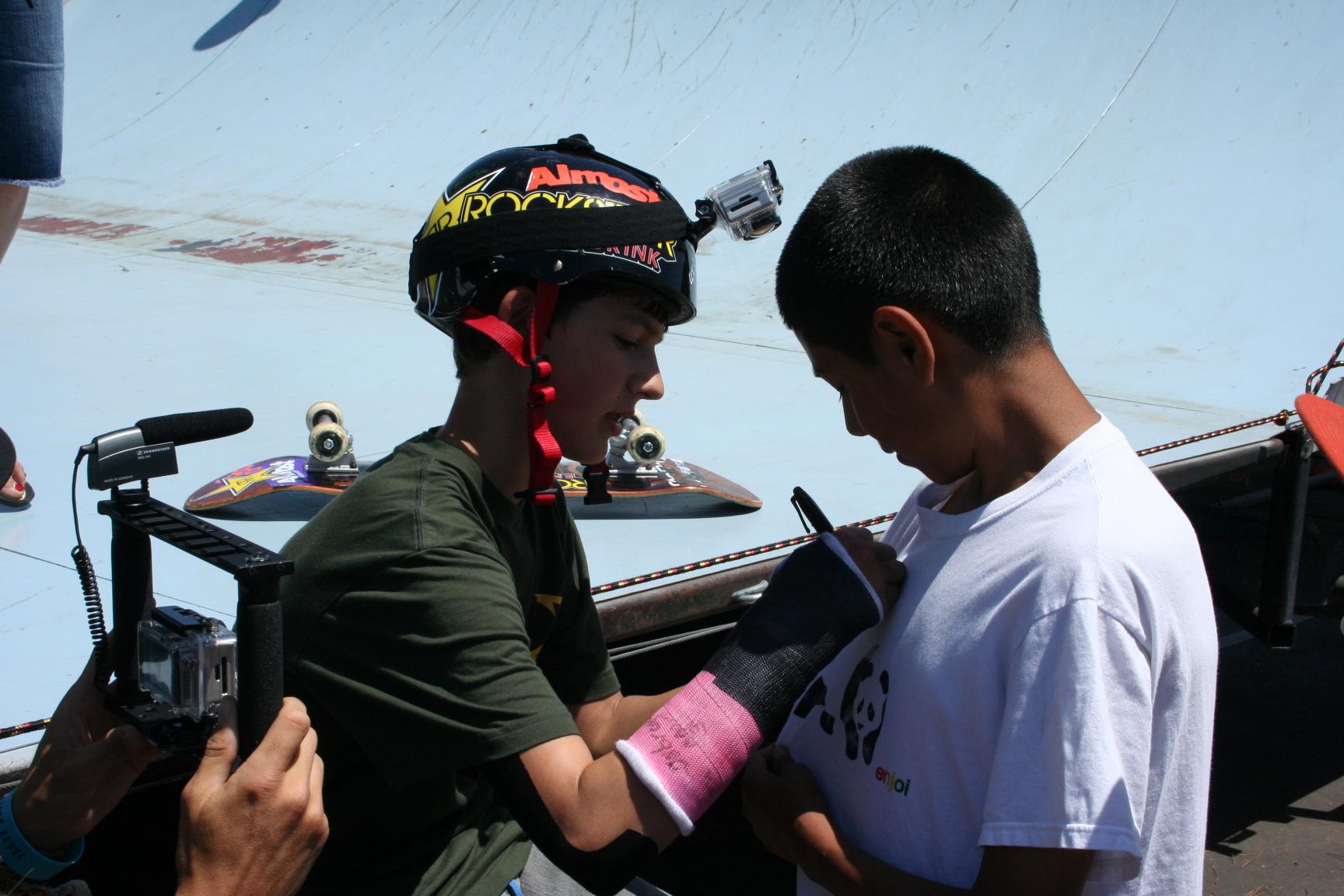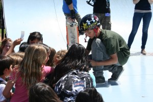 Mitchie puts his still- injured hand to use!The crowd takes in the demonstration…the elementary school students learned about pursuing your dreams.